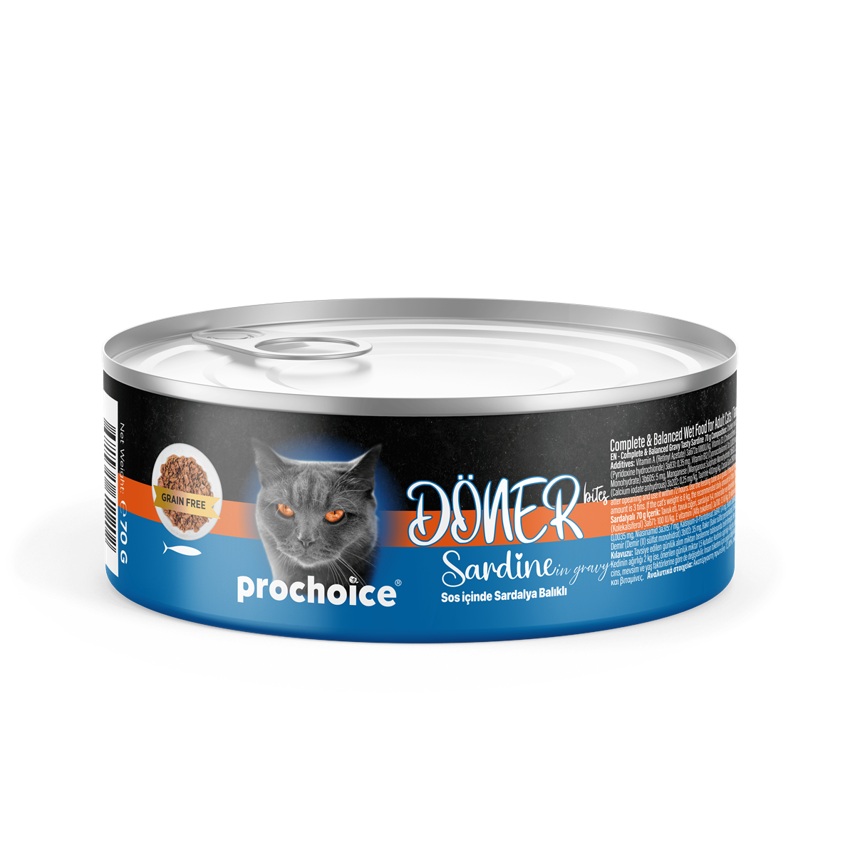 Prochoice Döner Sardine, Sos İçinde Sardalyalı Tam & Dengeli Yetişkin Kedi Maması 70 gr