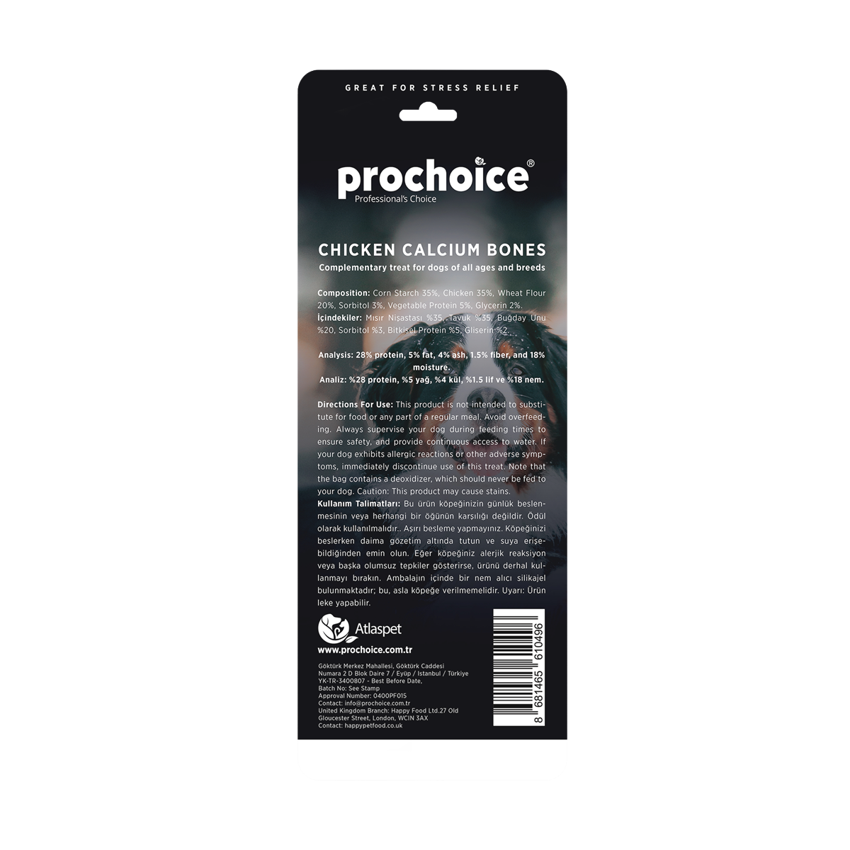 Prochoice Chicken Calcium Bones, köpeğinizin hem lezzetli hem de besleyici bir ödül almasını sağlayan mükemmel bir üründür. Tavuk sargısıyla kaplanmış olan bu kalsiyum kemikleri, köpeğinizin çiğneme ihtiyacını karşılayarak diş sağlığını destekler. Özellikle kemik sağlığı ve güçlü dişler için gerekli olan kalsiyum ile zenginleştirilmiş olan bu ödül, köpeğinizin kemik gelişimini güçlendirir. Tavuk lezzeti sayesinde köpeğiniz için cazip bir atıştırmalık olan bu kemikler, aynı zamanda çene kaslarını da güçlendirir ve uzun süreli çiğneme keyfi sunar.